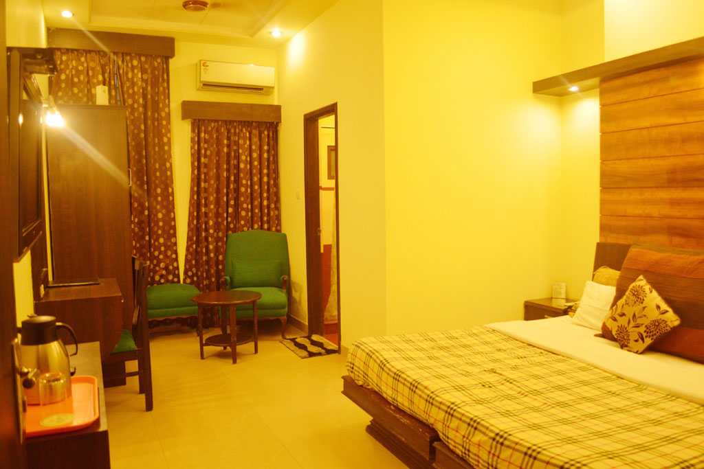 Hotel C J International in Amritsar has 40 rooms across 6 floors that offer amenities like television, desk, chair and attached bathroom with hot/cold running water supply. Facilities such as restaurant and parking are available within the premises of Hotel C J International. In-room dining and laundry is also provided to the guests.