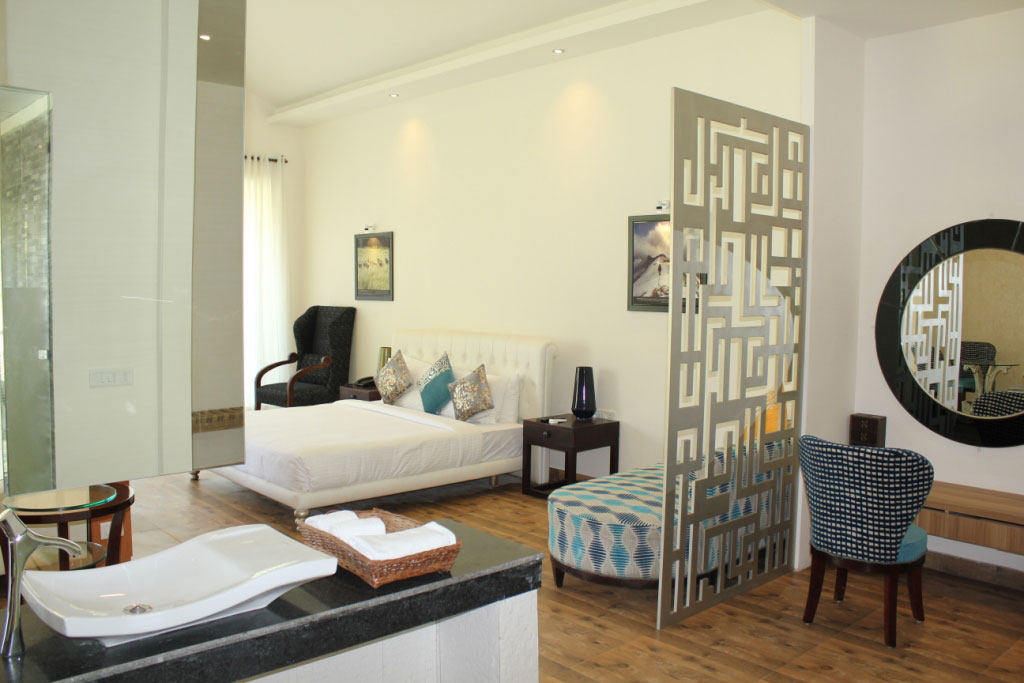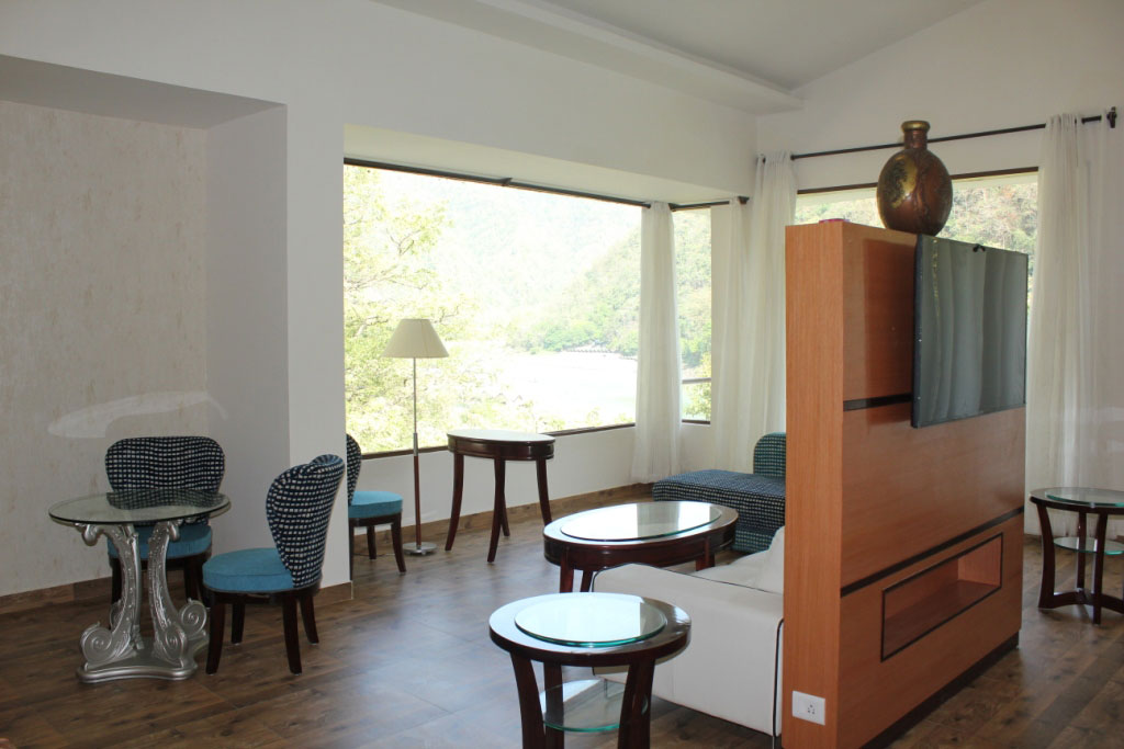 Namami Ganges Resort features a restaurant, outdoor swimming pool, a bar and garden in Shivpuri. This 4-star resort offers a private beach area and a concierge service. The property provides a 24-hour front desk, airport transportation, room service and free WiFi. All guest rooms has air conditioning, a flat-screen TV with cable channels, a fridge, an electric tea pot, a shower, free toiletries and a desk. The resort has certain units that include a balcony and river view, and every room has a private bathroom and a closet. The rooms at Namami Ganges Resort are equipped with a seating area. Guests at the accommodation can enjoy a continental breakfast. Namami Ganges Resort has a playground. You can play ping pong and squash at the resort, and bike rental and car rental are available. The nearest airport is Dehradun Airport, 20 miles from Namami Ganges Resort