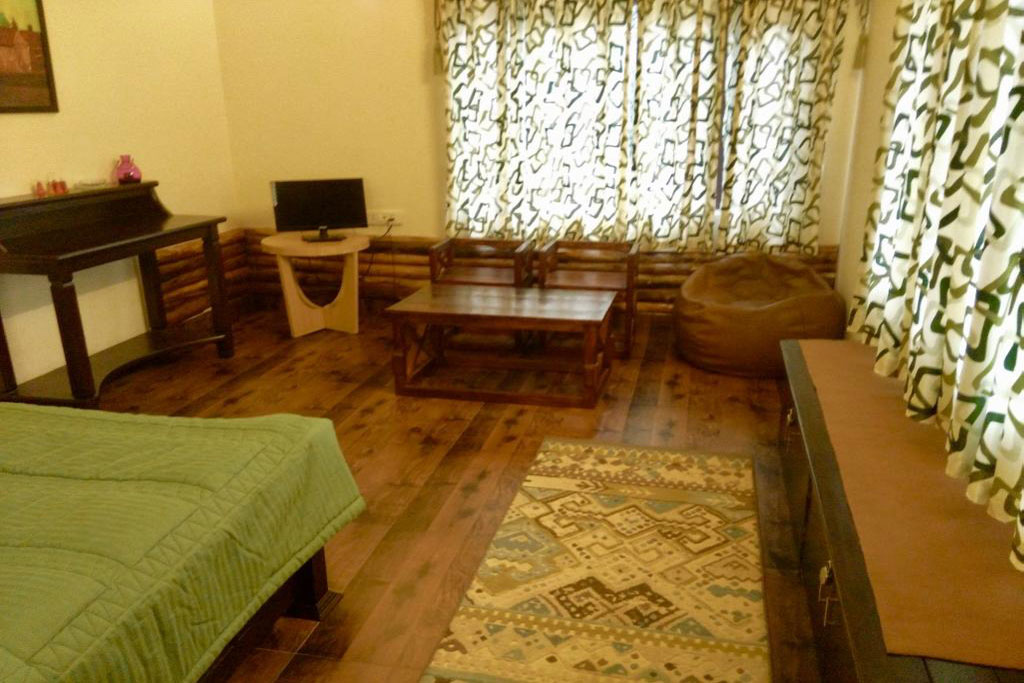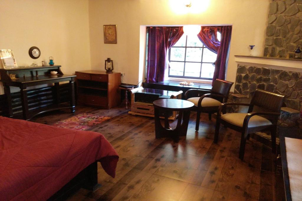 Nestled in an oak forest at a height of about 6300 ft, on a NH, lies Stone Heights. A Stone & wood Themed Villa with a retro rustic feel, but with all modern ameneties. Especially suited for families with little ones and those looking for a break from the crowds and the urban pace and chaos. The 3 bedroom Villa is set in the hamlet of Gethia and is within an hour drive of most places like Bhimtal, Sattal, Nainital, Naukuchiyatal. About 32 Kms from Kathgodam railway station and 320 kms from Delhi. Set in its own grounds in a private estate, two flights of step from the parking get one to the Villa.