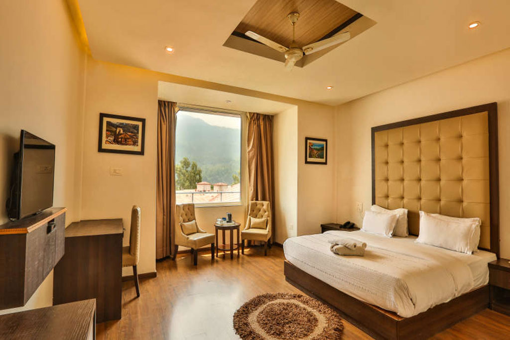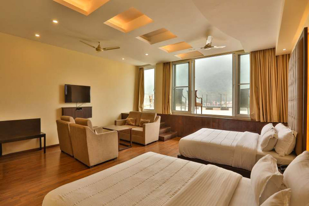 We are a budget hotel near Ram Jhula Rishikesh, offering luxurious rooms and suites at reasonable rates. Ideal for spiritual seekers, nature lovers and yoga lovers, this Rishikesh Hotel, brings you the real essence of Indias Yoga capital. Our hotel is surrounded by ancient temples and ashrams and is close to the river Ganga. We offer 4 categories of rooms and suites at one of the best budget hotels in Rishikesh. These are the Standard Room, Premium Room, Executive Suite and Family Suite. The rooms are designed to offer comfort and convenience for our guests staying in Rishikesh. A serene ambience and a plethora of contemporary amenities come together to provide you with a memorable stay in this city known for its pilgrimage sites and heritage.